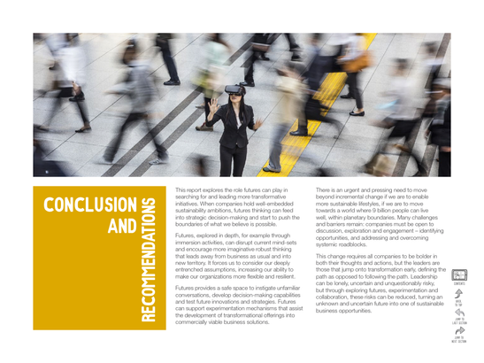 This report shines a spotlight on how companies can think about the future differently. It is designed to stimulate dynamic and productive discussion about 'futures' and experimentation as tools that can support moves beyond 'business as usual' strategies, specifically, in support of greater sustainability.
